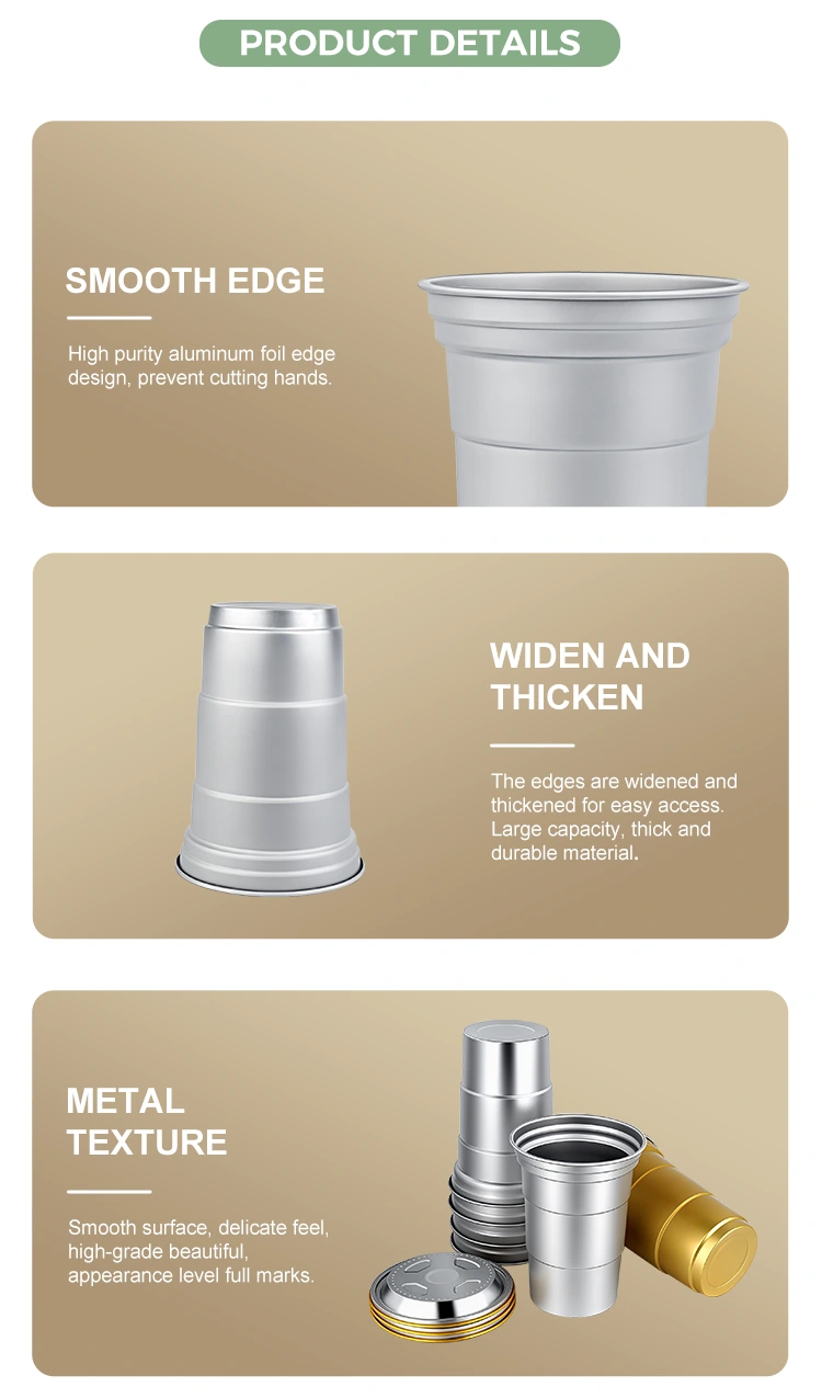 일반 용기와 달리 Yunchu 16oz 일회용 맞춤형 알루미늄 호일 음료 컵은 특정 시나리오의 브랜드에 포장 솔루션을 제공하도록 특별히 설계되었습니다. 컴팩트한 크기(460밀리리터)를 갖춘 이 맞춤형 일회용 16온스 맞춤형 알루미늄 호일 음료 컵은 일회용 인스턴트 음료의 소비 습관에 적합합니다. 이 16온스 맞춤형 일회용 알루미늄 호일 파티 컵은 실용적인 기능을 넘어 테이크아웃, 시장 또는 캠핑 활동에 특히 적합합니다. 주로 브랜드 가치를 높이는 데 도움이 될 수 있습니다.