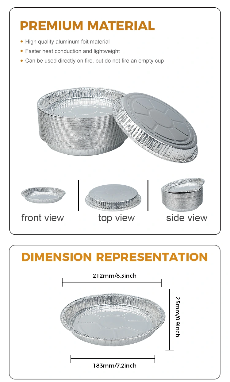 야외 활동을 좋아하는 친구의 경우 7-9 인치 피자 팬 실버 알루미늄 호일 용기는 음식을 보관하는 데 사용될뿐만 아니라 직접 폐기 할 수 있으며 (환경 친화적 인 폐기 방법을 선택할 수 있습니다) 위생적이고 환경 친화적 인 더러운 식탁기를 운반 할 필요가 없습니다.