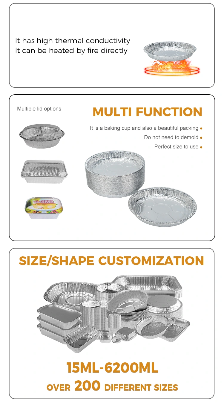가족 모임에서 7-9 인치 피자 팬 실버 알루미늄 호일 용기는 의심 할 여지없이 필수적인 도우미입니다. 로스트 치킨 및 스튜와 같은 주요 요리를 제공하거나 남은 음식을 보유하기위한 일회용 식기로 사용하여 편리하고 빠르며 식사 후 청소의 부담을 줄입니다. 또한 가볍고 편한 휴대 성으로 인해 야외 피크닉에 이상적입니다.