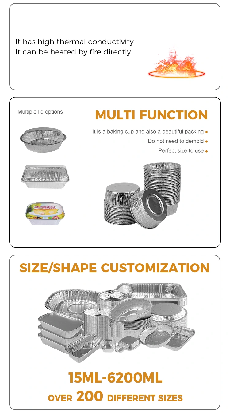 Yunchu Aluminum 포일 공급 업체 케이크 베이킹 컵은 알루미늄 포일 식품 용기 베이너 베이너, 2 인원, 다용도 알루미늄 포일 용기, 베이킹, 바베큐 광범위한 사용은 열린 화염으로 가열 될 수 있으며 베이킹에 저항 할 수 있습니다. 냄비, 베이킹 상점, 집, 음식 공장은 베이킹을 즐기지 않고 베이킹을 즐길 수 있습니다. 접히고 모양, 멋진 사용, 하나의 곰팡이 다목적, 푸딩, 케이크, 계란 타르트, 찐 계란, 바베큐 등, 방지 스틱 및 데드가 쉬우 며, 화상을 입지 않기 쉽고, 내부를 부드럽게 내부에 방출 할 수 있고, 열린 불꽃 가열 저항성 및 부러지면서 작은 스낵과 초콜릿을 향상시킬 수 있습니다.