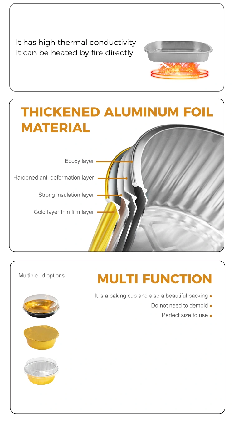 에그 타르트, 브라우니, 컵케이크, 피자 한 조각 또는 얇은 페이스트리를 위한 완벽한 포장입니다. 알루미늄 호일의 단열 특성은 구운 직후에도 페이스트리의 따뜻함과 부드러운 질감을 유지하는 데 도움이 됩니다. 맛이 완벽하게 유지되어 빵집이나 카페에서 테이크아웃하기에 적합합니다.