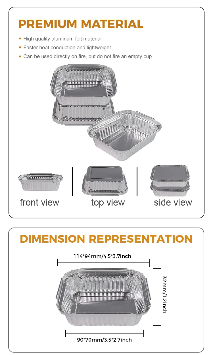 또한,이 일회용 바베큐 도시락 실버 알루미늄 포일 컨테이너는 화재 위험에 대해 전혀 걱정하지 않고 열린 불꽃 아래에서 일반적으로 사용할 수 있기 때문에 매우 안전합니다. 동시에, 우수한 온도 저항과 밀봉은 식품의 안전한 운송에 대한 보장을 제공하여 소비자와 고객이 더 많은 자신감을 가지고이를 사용할 수 있도록합니다.