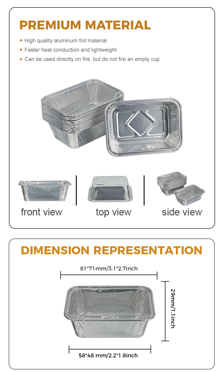 음식은 집에서 미리 가공하여 직사각형 알루미늄 호일 용기에 포장할 수 있습니다. 휴대가 간편하고 신선한 재료를 보관할 수 있습니다. 야외캠프 도착 후, 행사장에 준비되어 있는 야외 바비큐 그릴에 데워 드시면 됩니다. 가열 후 바로 사용할 수 있습니다. 사용 후 바로 쓰레기통에 버릴 수 있어 주방용품이나 접시의 수를 줄이고 외출의 부담을 줄여줍니다. 야채를 굽는 일이든 준비된 음식을 데우는 일이든 상관없습니다.