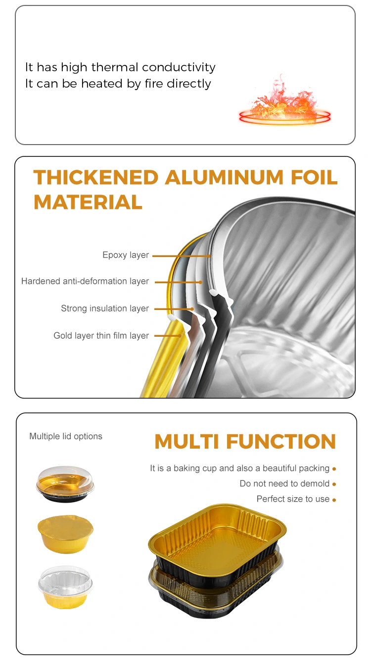 Yunchu 알루미늄 호일 공급업체의 일회용 직사각형 케이터링 테이크아웃 경량 벽 알루미늄 호일 용기는 식품 등급으로 만들어졌습니다. 엄격하게 가공 및 선별되어 특유의 냄새가 없습니다. 모든 생산 과정은 유해한 첨가물을 전혀 사용하지 않고 깨끗하고 먼지가 없는 작업장에서 완료됩니다. 밥, 고기, 국 등도 직접 접촉할 수 있다. 이 알루미늄 호일 용기는 FDA 표준을 엄격히 준수하여 US FD A 식품 등급 인증을 통과했습니다. 전문적인 테스트를 거친 후, 알루미늄 마이그레이션 양은 지정된 한도보다 훨씬 낮으며 테스트는 표준에 부합합니다. 우리는 공식적인 테스트 보고서를 얻었습니다. 국내 케이터링에 사용할 수 있을 뿐만 아니라 해외 수출 요건도 완벽하게 충족합니다. 체인 패스트푸드, 개인 요리, 국경 간 테이크아웃 가맹점 등 이중 보장이 가능합니다. 신뢰성이 높으며 -20°C에서 250°C까지의 극심한 온도 차이도 쉽게 견딜 수 있습니다. 냉장고 냉장, 냉동 보관부터 전자레인지 가열, 오븐 굽기, 심지어 직화 가열(보온 도구 필요)까지, 테이크아웃용 뜨거운 국물과 따뜻한 요리를 포장하는 데 사용할 수 있습니다. 장기간 보온하여도 용기가 부드러워지거나 변형되지 않으며, 녹거나 유해가스가 발생하지 않습니다. 소비자는 식품을 받은 후 용기를 바꿀 필요 없이 바로 전자레인지에 넣어 가열한다. 또한, 열이 고르게 전도되므로 가열 시 국부적인 과열이나 음식물 끼임 현상이 없습니다. 음식의 맛을 최대한 유지할 수 있습니다. 구운 쌀, 스튜, 바비큐 또는 구운 반제품이든 포장에 적합합니다.