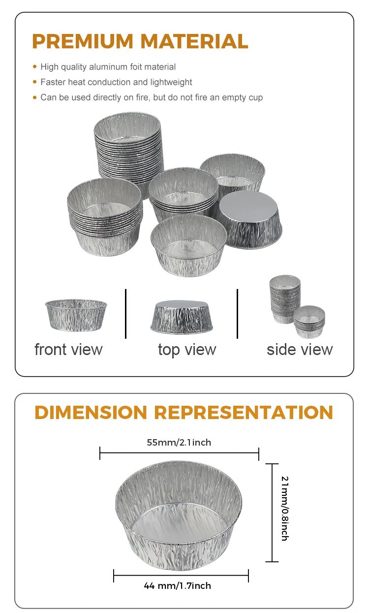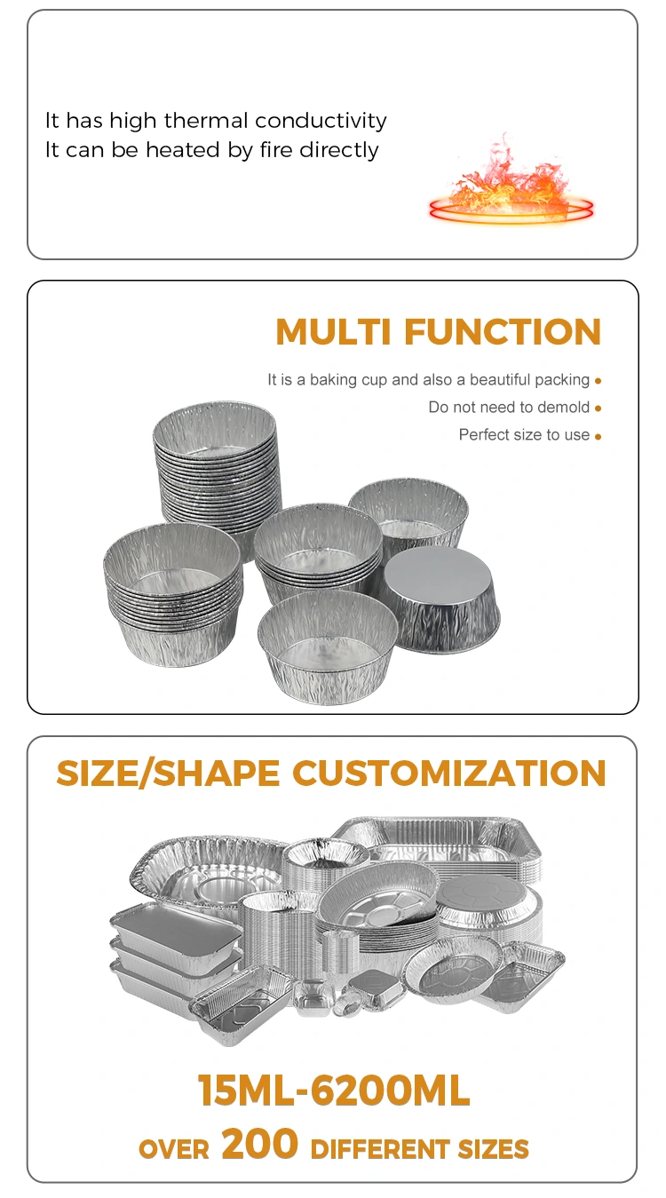 Yunchu 알루미늄 호일 공급업체의 일회용 은색 원형 담금 에어 프라이어 은색 알루미늄 호일 용기는 식품 등급의 두꺼운 알루미늄 호일로 만들어졌습니다. 안전하고 냄새가 없으며 유해한 강수량이 없습니다. 모든 종류의 담금 재료에 직접 접촉할 수 있습니다. 이 작은 알루미늄 호일 용기는 겹쳐서 보관할 수 있어 공간을 절약할 수 있고 변형되지 않으며 새지 않습니다. 은색 알루미늄 호일은 질감이 균일하고 열전도율이 우수합니다. 레스토랑, 카페, 가족모임 등에서 활용이 가능합니다. 에어프라이어 등의 간식과 함께 사용됩니다. 걸쭉한 소스와 기름진 디핑 소스를 넣어도 새지 않습니다. 테이블 상판과 주방용품을 깨끗하고 깔끔하게 유지해줍니다. 호일의 표현은 다양한 장면에서 간단하고 아름답습니다. 은색 외관은 다양한 디너 접시와 조화를 이룰 수 있습니다.