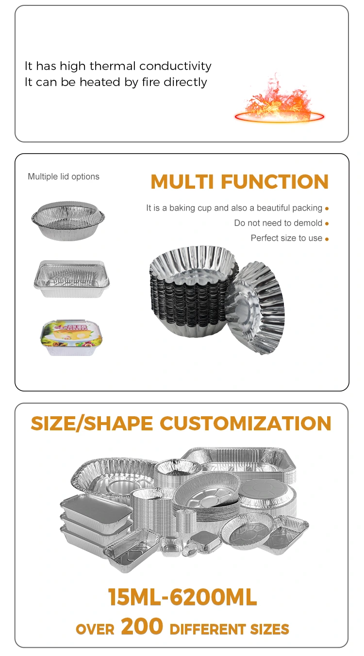 미끄럼 방지 알루미늄 호일 컨테이너 컵 바디 컵 본체는 미끄럼 방지 질감, 마찰 증가, 미끄러짐 방지, 컬링 컵 입 디자인, 쉽게 가져갈 수 있고 손을 다치게하지 않으며 한 번에 여러 개의 대용량 디자인을 형성하며 청소할 필요가 없으며 시간과 에너지를 절약하며 구운 계란 타르트, 케이크, 계란 노른자 칩, 그릇 케이크 및 기타 진미에 널리 사용되며 환경 친화적인 재료는 독일 ERP 인증, EU를 통과했습니다. SGS 인증 및 ISO9001 품질 경영 시스템 인증, 제품의 안전성과 환경 친화성을 보장합니다.