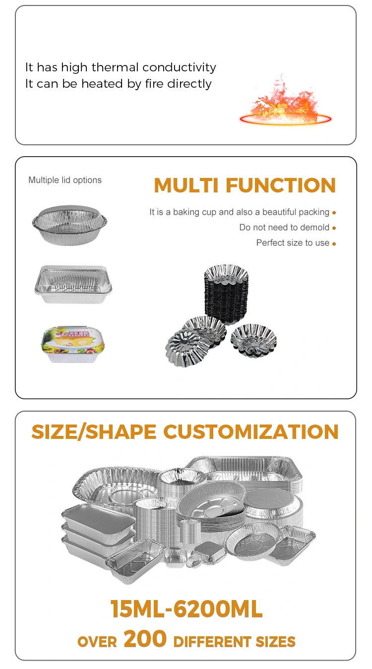 도매 제품, 알루미늄 호일 재료, 안전하고 비 독성, 알루미늄 호일 식품 등급 재료로 만들어지면서 열전도율이 우수하고 안전하고 무독성 용도로 풍부하고 다양하므로 더 편리하게 사용할 수 있으므로 고온을 사용할 때 곰팡이를 쉽게 제거 할 수 있습니다. 완제품이 완료되면 필름을 제거 할 수 있습니다. 냄비를 씻는 데 작별 인사를하고 냄비를 쉽게 보호하고, 사용 후 오일 얼룩을 분리하고, 청소할 필요가 없으며, 부드러운 바닥을 태우고 바닥에 달라 붙지 않으며, 스틱이 아닌 음식은 요리하기 쉽고, 바닥은 매끄럽고, -20 ° C ~ 300 ° C를 견딜 수 있으며, 열린 불꽃으로 가열 될 수 있습니다.