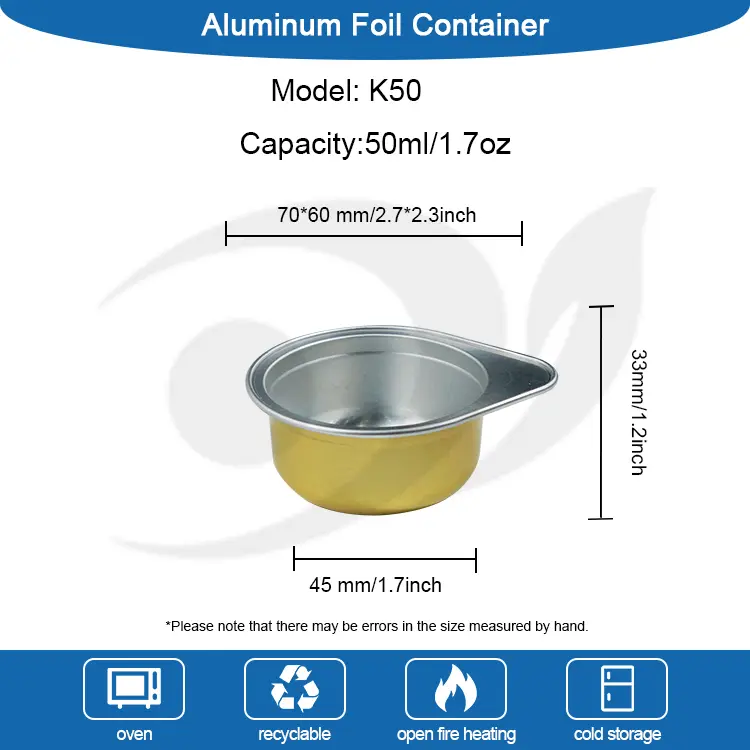 Yunchu 알루미늄 호일 공급업체 K50 열 밀봉 실리콘 밀봉이 없는 빈 커피 캡슐 상단: 70*60mm, 2.7*2.3인치, 베이스: 45mm, 1.7인치, 높이: 33mm 1.2인치, 50ml 1.9oz 음식을 담을 수 있으며 모든 네스프레소 커피 메이커(네스프레소), 포장된 에스프레소 파우더에 적용하거나 유통 기한을 연장하기 위해 질소로 헹굴 수 있습니다.
