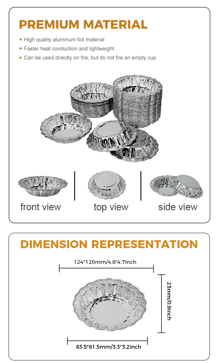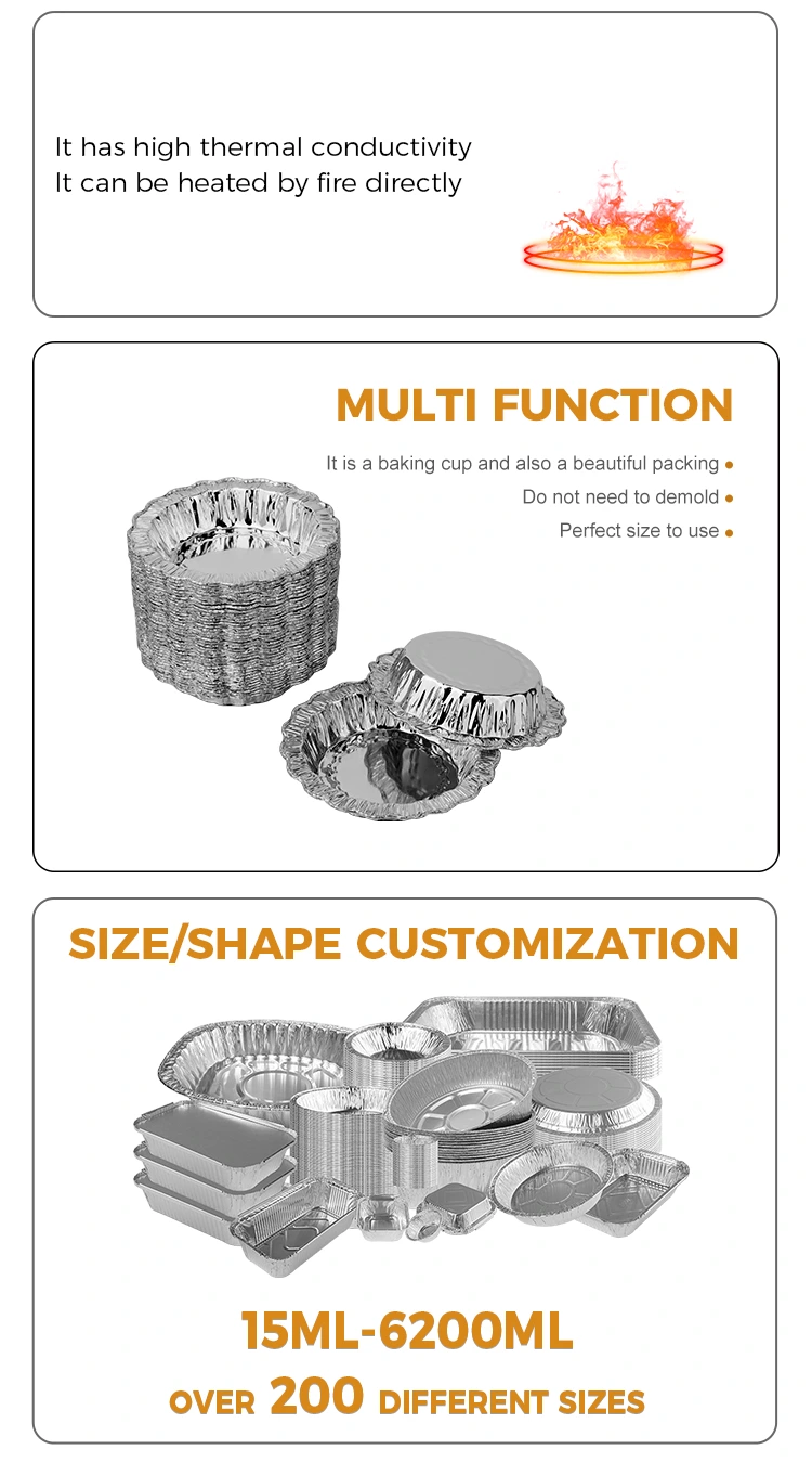 Yunchu 알루미늄 호일 공급자 레이스 라운드 베이킹 케이크 은색 알루미늄 호일 용기는 베이킹 케이크, 에그 타르트 및 공기 튀김에 매우 편리하며 베이킹에 두껍고 내구성이 뛰어난 많은 기능을 갖추고 있습니다. 베이킹 틀을 선택할 때 가장 중요하게 생각하는 것은 무엇입니까? 믿을만한 소재인가요? 탈형이 쉽나요? 사용자 친화적인가요? 이 레이스 라운드 베이킹 케이크 은색 알루미늄 호일 용기는 베이킹 금형에 대한 요구 사항을 충족합니다! 8011 식품 접촉 등급 알루미늄 호일 소재로 제작된 일체형 성형, 두꺼워지고 내구성이 있는 베이킹용, 식품 접촉에 안전하고 쉽게 변형되거나 누출되지 않으며 균일한 열 전도, 쉽게 타거나 너무 익히지 않음, 맛있고 안전하며 기름과 얼룩 방지, 탈형 용이, 쉽게 잡을 수 있도록 레이스가 있어 주름진 모양으로 다루기 쉽고 바닥이 둥글고 매끄러워 빠른 탈형이 가능합니다.