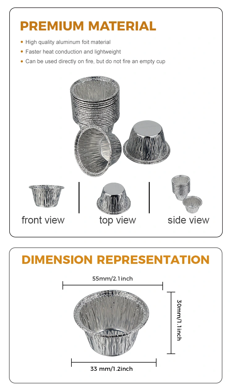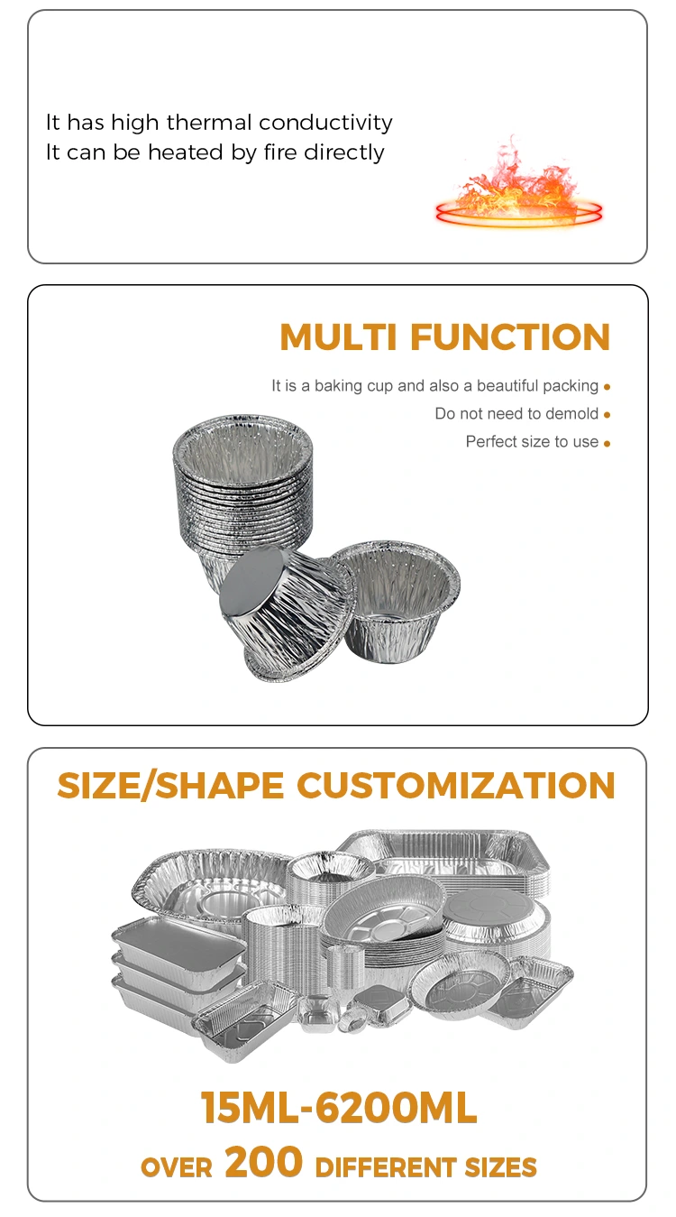 가정용 오븐 용도의 경우 알루미늄 호일 컵을 사용하여 아이들이 먹고 싶어하는 미니 케이크와 건강에 좋은 구운 푸딩을 만들 수 있습니다. 베이킹 트레이를 청소할 필요가 없으며 식사 후 청소가 쉽습니다.