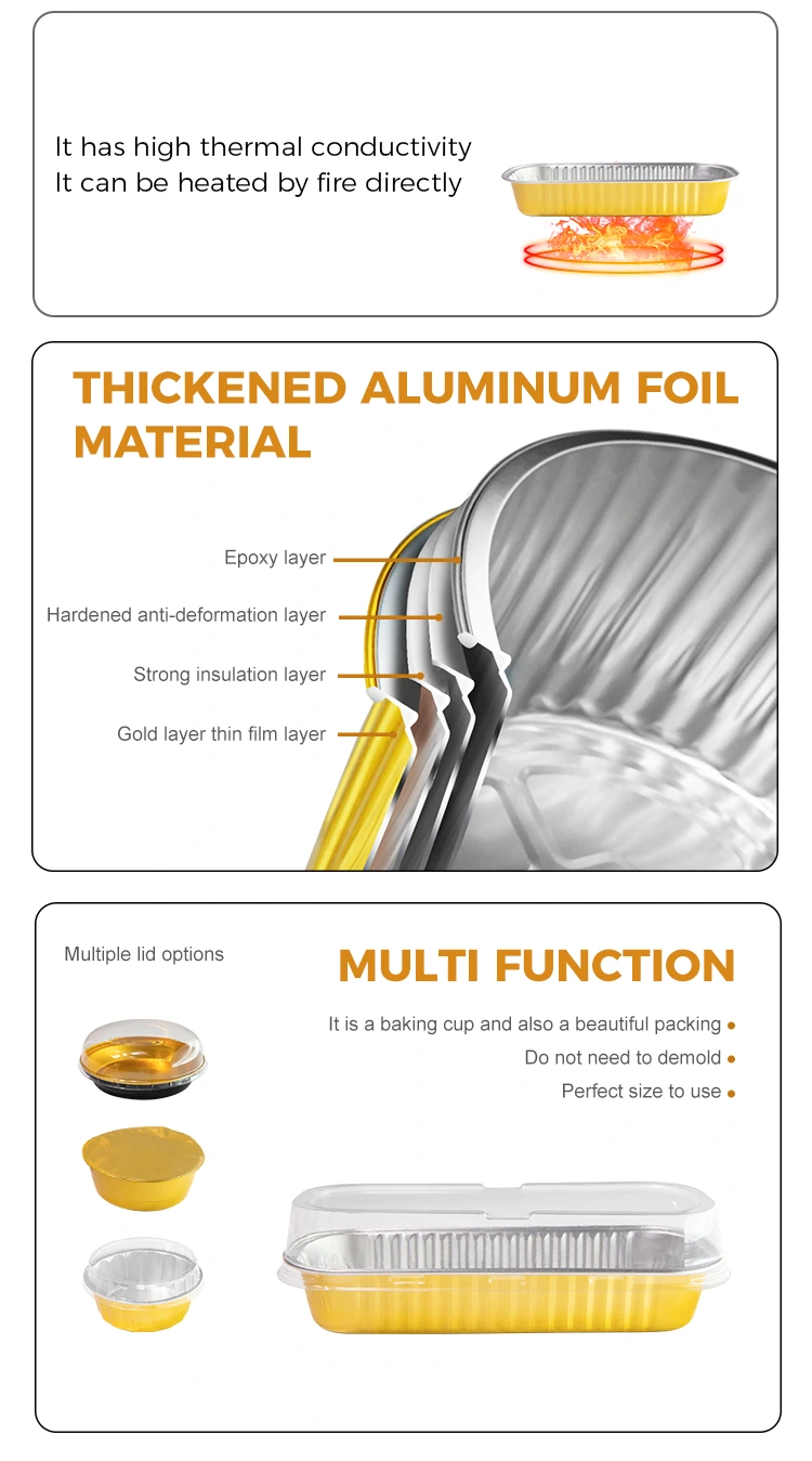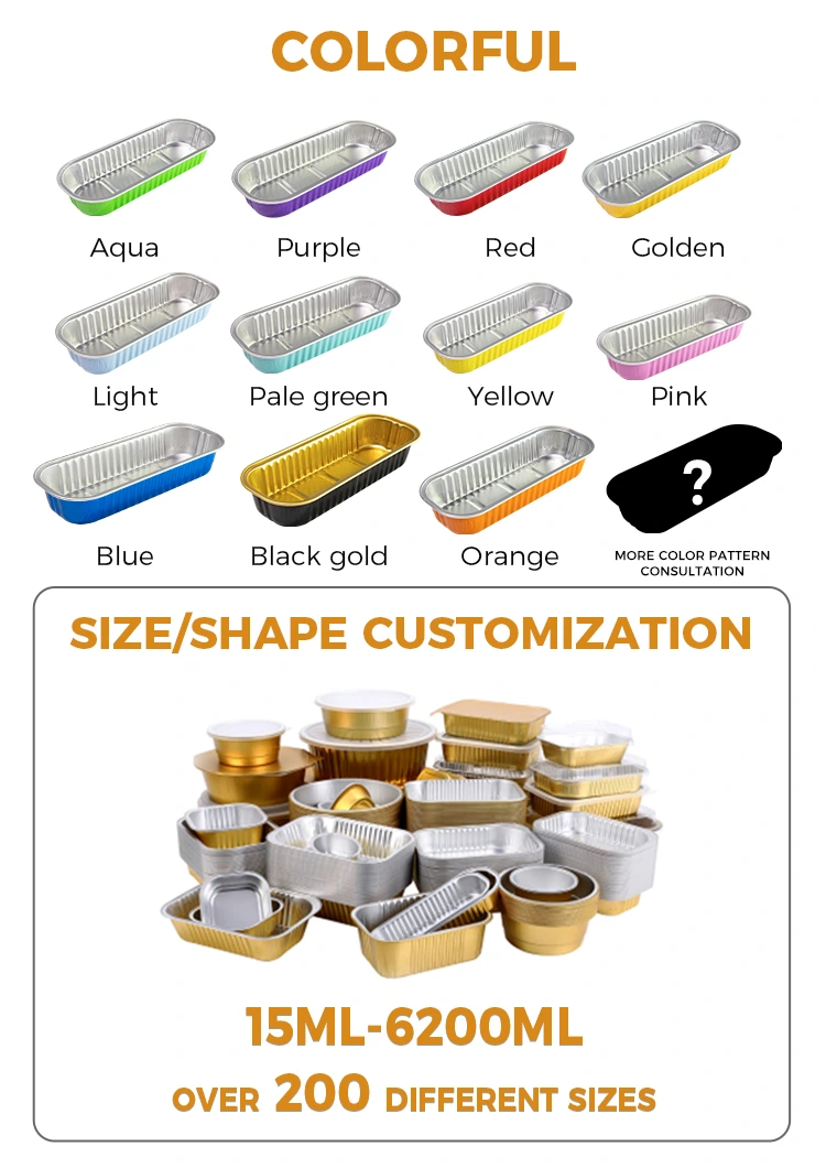 Yunchu Aluminum 포일 공급 업체 베이킹 케이크 Smooth Wall Aluminum 포일 용기는 8011 식품 등급 알루미늄 호일 재료로 만들어졌으며 뚜껑, 알루미늄 호일 뚜껑 및 애완 동물 완전 투명 플라스틱 뚜껑이있는 냉장고에 보관하기로 선택합니다. 공기 프라이어, 오븐 및 기타 장비, 기타 디자인 에어 프라이어, 오븐, 오랫동안 사용될 수 있습니다. 환경 친화적 인 오목하고 볼록한 디자인은 제품의 안정성을 증가시킬뿐만 아니라 미끄럼 방지에서도 역할을합니다. 측면의 보강재는 제품의 견고성을 향상시켜 내구성이 뛰어나며이 직사각형 라이트 벽 알루미늄 포일 컨테이너는 다양한 색상을 선택할 수 있으므로 선호도에 따라 사용자 정의 할 수 있습니다.