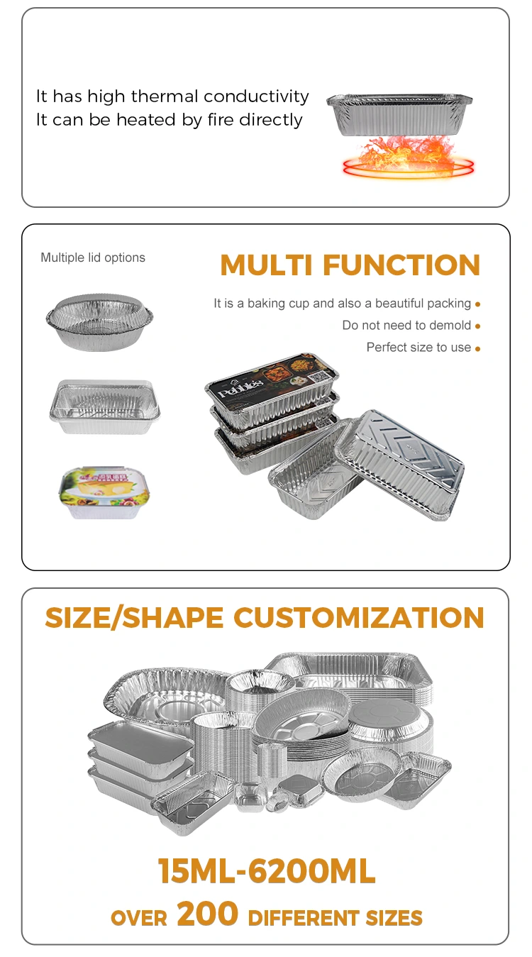 Yunchu 알루미늄 호일 공급 업체, 직사각형 바베큐 두꺼운은 알루미늄 호일 용기는 바베큐, 뜨거운 냄비, 베이킹, 테이크 아웃 포장, 테이크 아웃 포장, 다양한 요리 기술이 상자에서 수행 될 수 있으며 다양한 크기의 냄비 및 장비 등, 크기 및 사양에 적합한 다양한 화염을 충족시키기 위해 다양한 규모의 용도를 충족하고, 공중에 공중에 적합하고, 공중에 공중에 적합합니다. 열과 기름 저항, 쉬운 베이킹, 야외 바베큐, 임시 그릇은 화재를 두려워하지 않습니다. 사용할 때 음식이나 수프를 배치해야하며 물이 없으면 건조하지 않으며 가정 오븐은 깨끗하고 요리를 처리하기에 편리합니다.