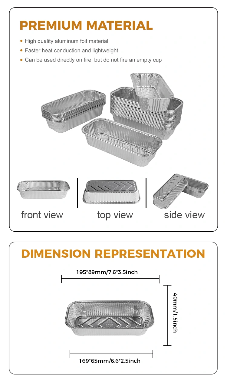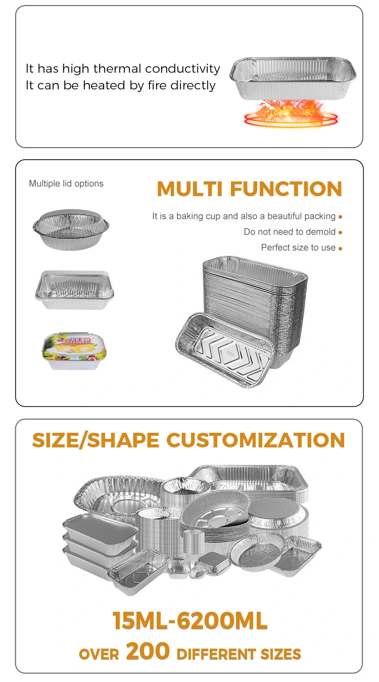 특징 : 도시락 도매 8011 알루미늄 호일 재료는 좋은 열 보존으로 만들어져 음식의 온도를 유지하고 음식을 더 맛있게 만들 수 있습니다. 또한 직사각형 바베큐 실버 알루미늄 포일 컨테이너에는 열 보존 기능이 있으며 알루미늄 포일 종이 뚜껑 및 애완 동물 플라스틱 뚜껑과 일치 할 수있는 열 보존 기능이있어 로고를 사용자 정의하고 고객의 인상을 더 깊게 심화 시키며 브랜드 이미지를 향상시킬 수 있습니다.