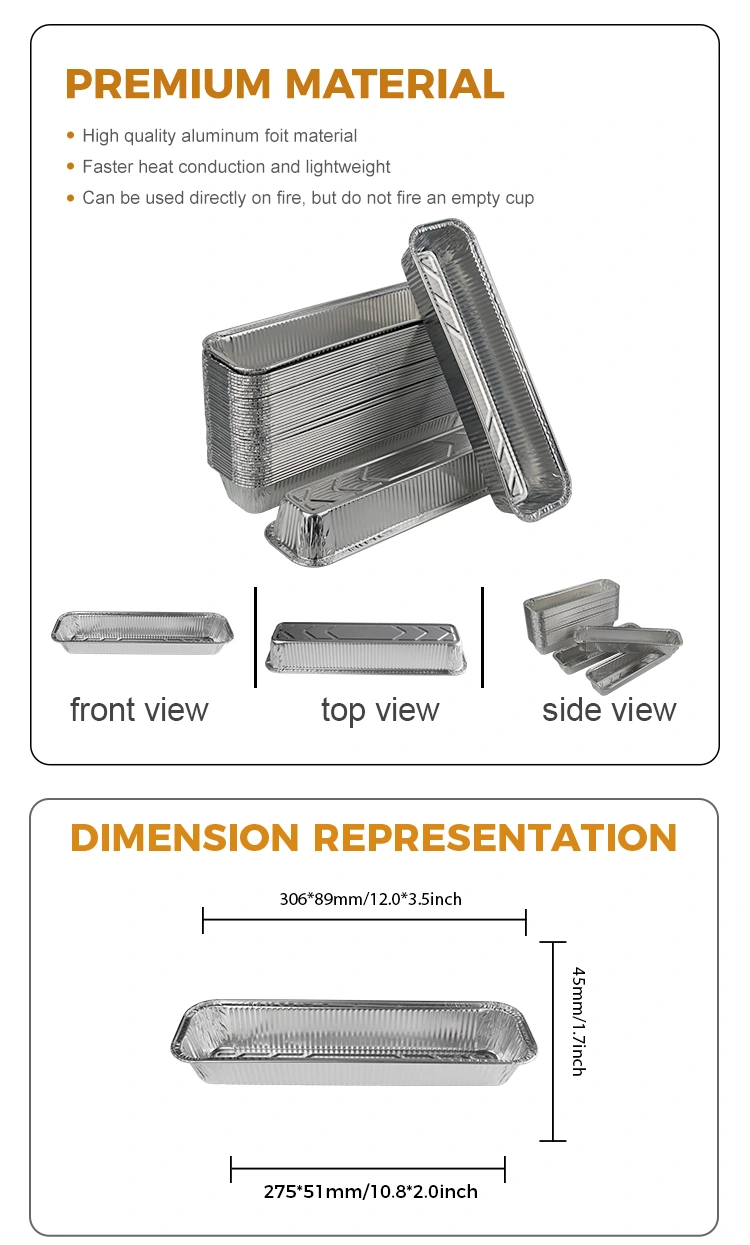 Yunchu 알루미늄 호일 공급 업체가 제공하는 사각형 빵 트레이 은색 알루미늄 호일 용기는 식품 등급 재료로 만들어졌으며 다양한 응용 시나리오에 적합합니다. 이 제품은 빵의 긴 빵이나 베이킹과 같은 굽고 베이킹 목적으로 특히 적합합니다. 숯 그릴을위한 것이 든, 테이크 아웃 배달 상자에 관계없이 사용하기에 적합합니다.