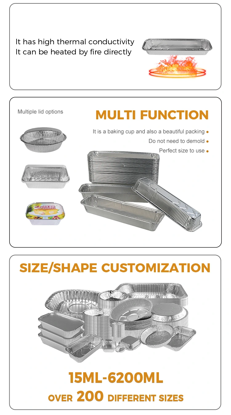 특징 : 직사각형 빵 트레이 베이킹 실버 알루미늄 호일 용기 건강하고 환경 친화적, 식품 등급 재료, 안전하고 무독성, 재생 가능하며 환경 친화적 인 재료, 식품 안전을 강조하고 전반적인 제품 품질을 추구합니다.