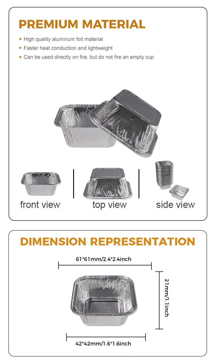 Yunchu Aluminum 포일 공급 업체 Square Fryer Air Fryer Silver Aluminum Foil 용기, 케이터링, 가정용 에어 프라이어 생산, 테이크 아웃 배달, 뷔페 소스, 연회 및 기타 장소가 있지만 찐 계란, 초콜릿, 비스킷, 작은 케이크, 소스 및 기타 범위에 적합한 음식이든 소스와 함께 사용될 수 있습니다. 알루미늄 포일 컵은 요리에 포인트를 추가하면서 씻을 수 있지만 부담없이 씻고 사용할 수도 있습니다.