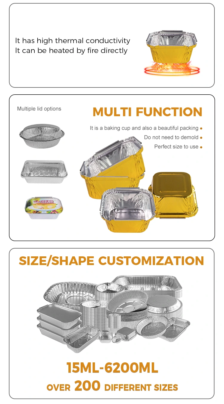 Yunchu Aluminum 포일 광장 베이킹 오븐은 오븐은 알루미늄 포일 용기 보호기 보호대가없고, 멀티 튀김, 방수 및 오일 드레인, 청소, 오븐, 에어 프라이어, 바베큐, 증기 특수, 변형없이 반복적으로 사용되는 두꺼운 재료는 두껍고 물로 청소할 수 있으며, 다양한 음식과 일치 할 수 있습니다. 동결 건조, 찐 계란, 푸딩 베이킹, 과일 샐러드 등, 식품 접촉 등급 재료에 안전한 안전, Yunchu는 식품 등급의 건강 재료 도매를 선택하는 요구 사항을 엄격히 따릅니다.