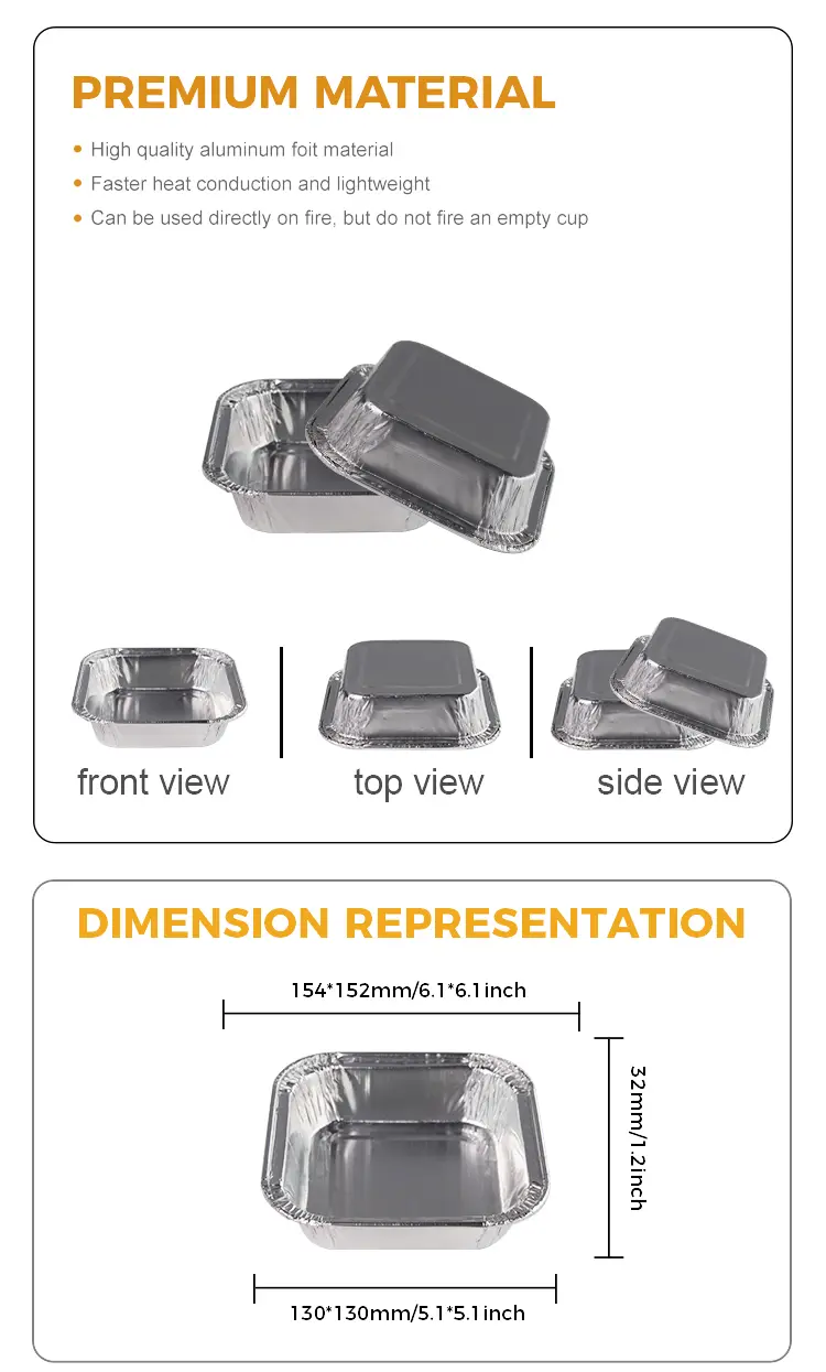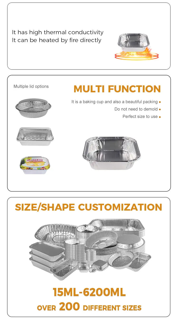 Yunchu Aluminum 포일 공급 업체 모델 3217 Square Cake Air Fryer Silver Aluminum 포일 용기이 스타일은 홈 베이킹, 에어 프라이어, 테이크 아웃 포장, 어셈블리 라인 공장 도매 구매 제품, 완전 컬링 디자인을 사용하여 손을 긁지 않고 PET 전체 투명한 표지를 제공 할 수 있지만 5000/조각에서 MOQ가 시작될 수 있습니다. Fryer Silver Foil 용기에는 선택할 수있는 다양한 사양과 모델이 있습니다. 비즈니스 직원에게 문의하여 문의 할 수 있습니다.
